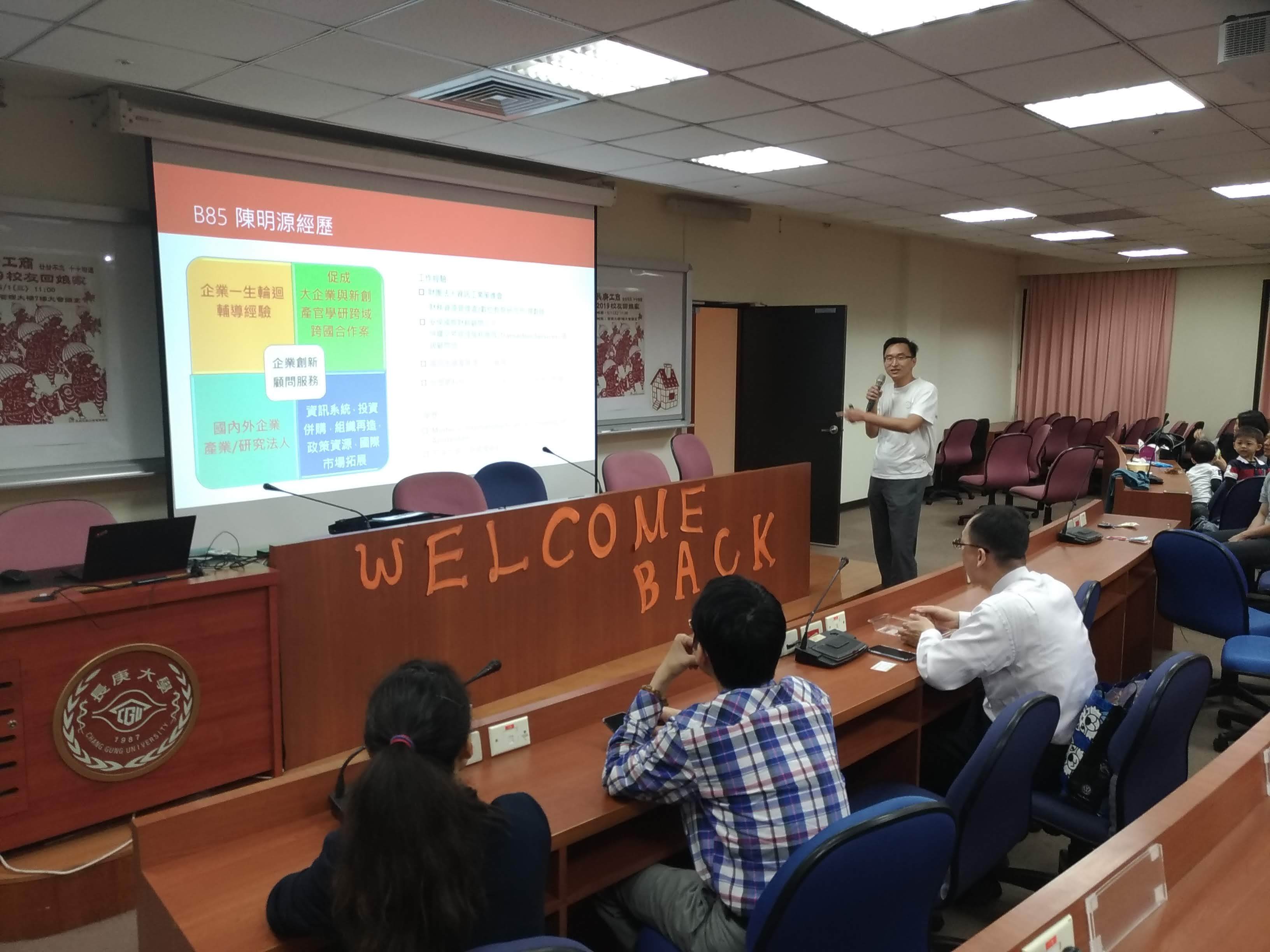 ▲碩士班林縉信校友分享自行創業艱辛 |