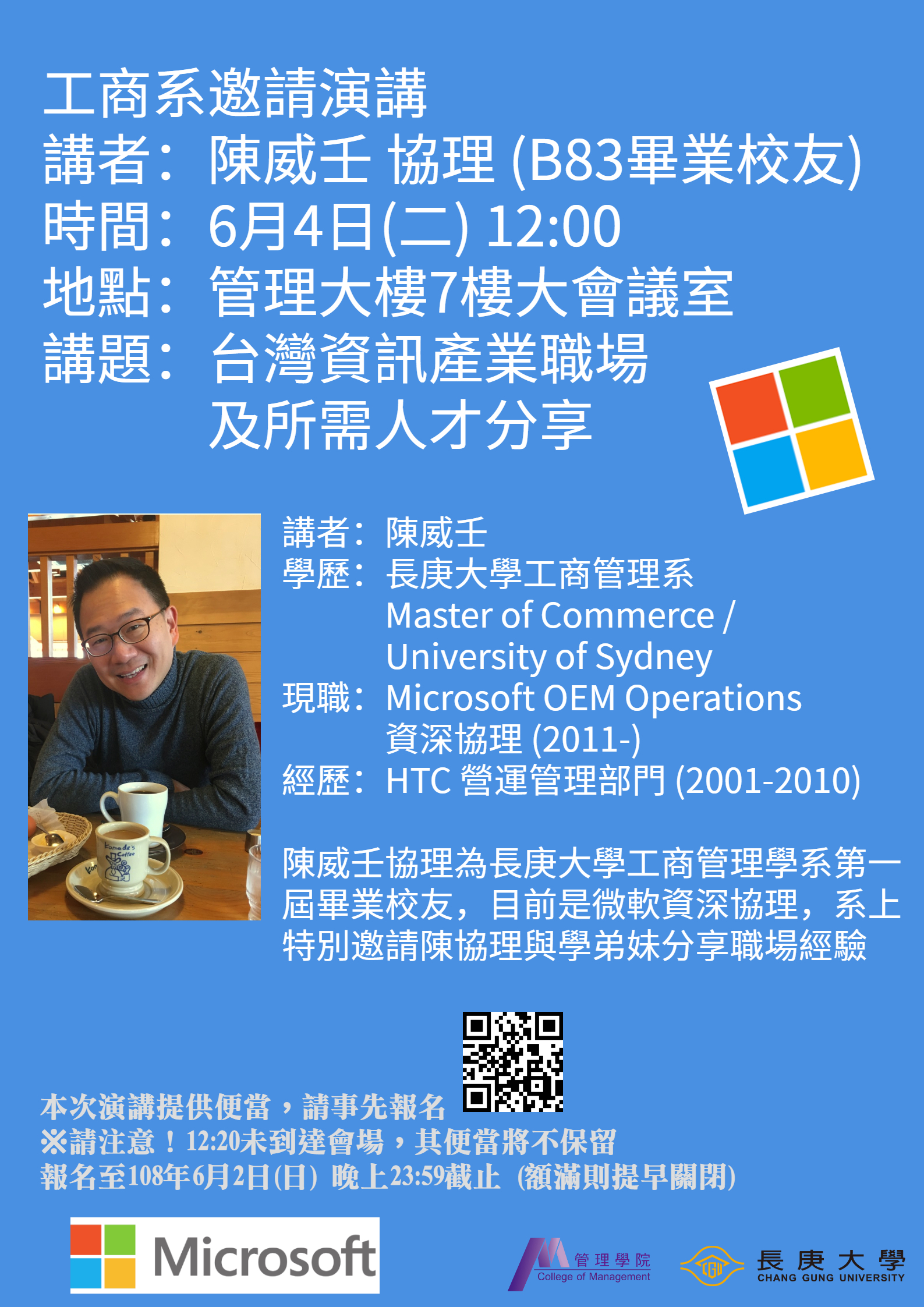 ▲陳威任校友演講海報