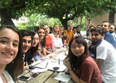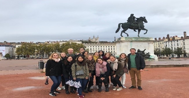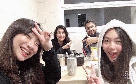 上課團體報告多,教學方法也很多元。影片、角色扮演、個案討論都很常見,且常需要運用跨學科知識,也能有效訓練自己用英文精確有邏輯地表達。個案討論時,將自己所學及台灣應用結合。學校提供法文課程,不僅語言能力提升,也有品酒、乳酪等文化分享。交換學生或班上同學也常組織課外活動,欣賞聖誕前後市中心的精美布置、聚餐;廚房就像交誼廳,能和各國同學從學校聊到文化差異,交換各國食物,和南法的日落一樣每天都讓人驚豔。
